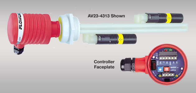 The general purpose level switch package provides automatic tank filling or emptying up to 10' (3m) between two adjustable level switch points. The compact level controller with optional strobe provides one latching 16A relay for pump or valve control. Offered in three level sensor technologies, select the type based upon your application media. This polypropylene liquid level switch package is widely selected for sump, process and day tank level applications.