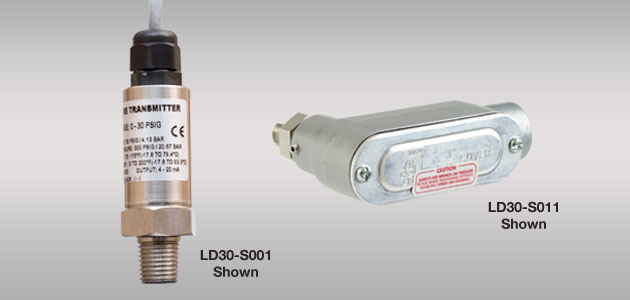 The general purpose external pressure level transmitter is offered in two styles of termination and provides continuous level measurement up to 69' (21m) of water column with a 4-20 mA signal output. Select the -S_01 level sensor for cable termination or the -S_11 level sensor for conduit termination with an integral junction box. This liquid level sensor is well suited for clean liquid or gas media. Applications include cutting oil and air.