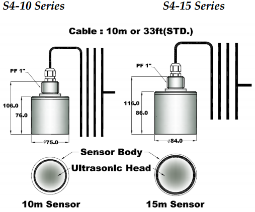 S4-10P Sensor Body: Clean PVC, Ultrasonic Head: Teflon facing