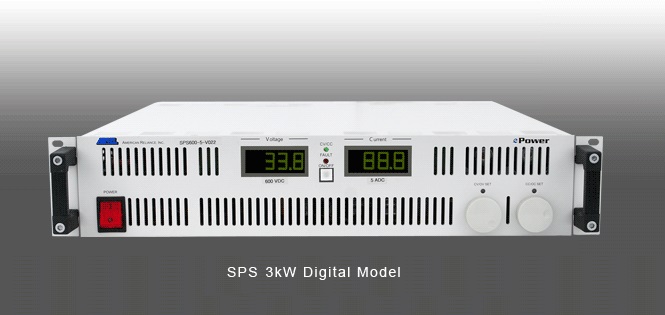 The SPS 3kW programmable dc switching power supply series, is a member of the ePower line of programmable dc power supplies. Bench of rackmount compatible, the SPS 3kW was designed for ATE System Integration.