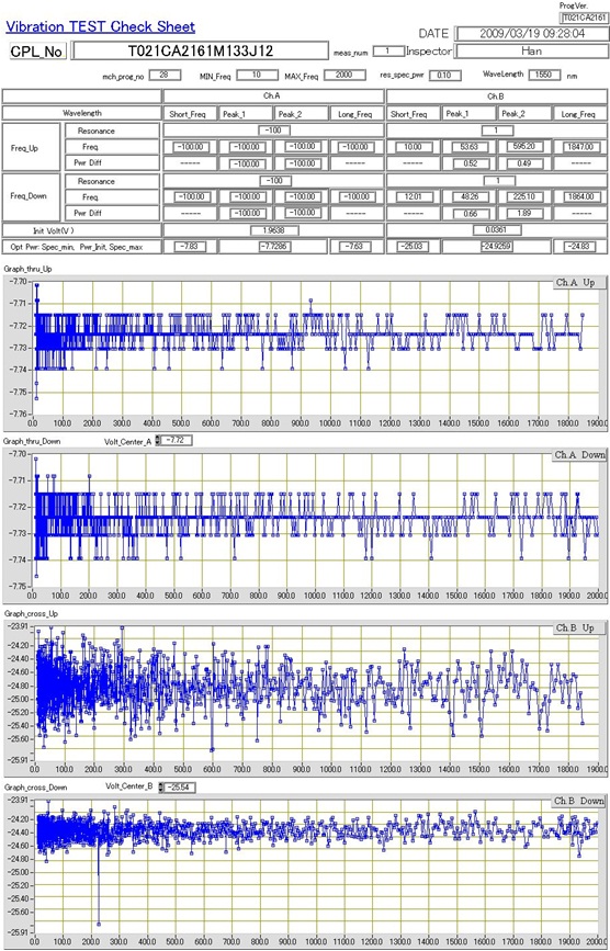 Tần số test lên tới 2000Hz. Với hai chu kỳ test là tần số tăng dần và tần số giảm dần. Trong quá trình sản phẩm được đặt trong hệ thống Vibration bị rung và dao động, các thông số hoạt động của sản phẩm được kiểm soát và đo đạc. Một khi sự thay đổi hoạt động của sản phẩm vượt ra ngoài phạm vi cho phép, chương trình sẽ cảnh báo và tự động dừng lại. Lưu trữ dự liệu và thiết lập các thông số máy móc trong hệ thống trở về tình trạng ban đầu.