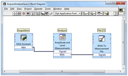 Tuy rằng một bên thì mang ý nghĩa sơ đồ thuật toán còn một bên là mã nguồn thực thi của thuật toán đó nhưng rõ ràng là cả hai hình ảnh ta đang đề cập trên đây có một sự tương đồng về bố cục. Do đó, có thể nói rằng với LabVIEW bạn nghĩ sao thì có thể làm được vậy. 3 Express VI trong G Code có chức năng thực hiện 3 khối chức năng trong Flowchart trên đây mà bạn đã vạch ra từ đầu cho ứng dụng của mình. Việc lập trình cứ được tiến hành một cách thật đơn giản. Bạn chẳng cần phải tốn công sức để nhớ những quy định về cú pháp, từ khóa, cấu trúc vòng lặp rối rắm trong các ngôn ngữ lập trình text truyền thống.