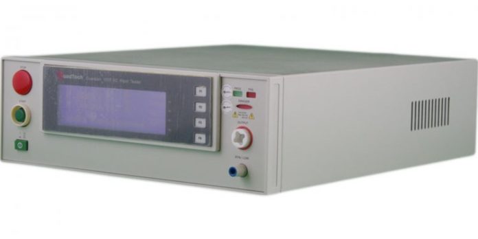 The Guardian 1010 AC Hipot Tester performs AC dielectric withstand (hipot) tests. The test voltage can be programmed in the range from 50VAC to 5kVAC with a resolution of 1V. The maximum total output current is 30mA.