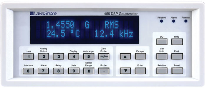 Lake Shore Cryotronics Model 455 DSP Gaussmeter sử dụng các cảm biến từ trường đa phương (Hall) để đo các dải từ 20.000 G cho đến 30 G với độ chính xác cao. Nó cũng có thể đo các giá trị độ lệch từ trường từ nhỏ nhất (1.0 G).