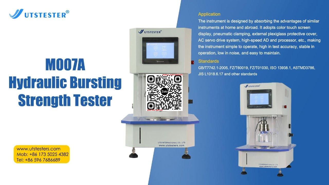 M007A Hydraulic Bursting Strength Tester có thể sử dụng cho nhiều mục đích khác nhau, từ đo đạc độ bền nổ của các vật liệu linh kiện trong sản xuất công nghiệp, như vải, giấy, nhựa đến việc kiểm tra sức mạnh của các sản phẩm gia dụng đơn giản như chai lọ, túi bao bì hay các sản phẩm dệt may. Thiết bị hoạt động với nguyên lý đơn giản, tạo một lực áp lên các vật liệu để đo được độ bền và áp suất chịu được.