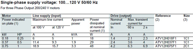 Iverter atv12 Single-phase supply vottage: 100…120 V 50/60 Hz