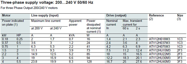 Inverter atv12 three-phase supply vottage: 200…240 V 50/60 Hz