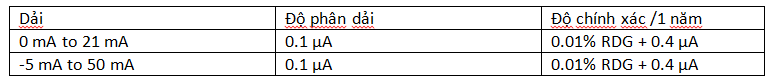 - Dòng điện: lên đến 0.007% RDG và dải 100 mA Nguồn Loop 24 V