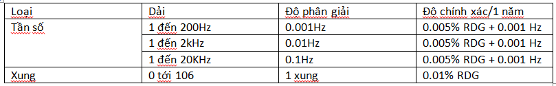 - Tần số: Lên đến 0,01% RDG và dải 100kHz