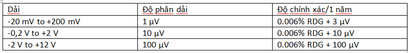 - Điện áp: lên đến 0,005% RDG và dải 50V